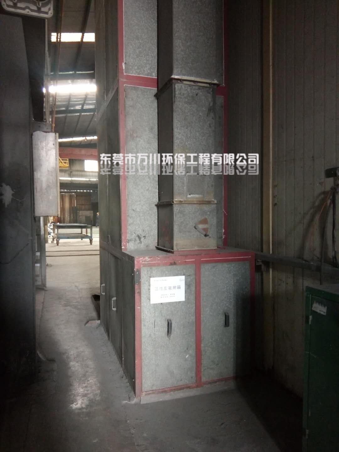活性炭固體表面上存在著未平衡飽和的分子力或化學鍵力,因此當固活性炭與噴漆廢氣接觸時,就能吸附噴漆廢氣分子,使其濃集并保持在活性炭表面,達到凈化的作用。