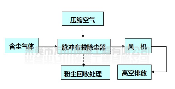 為了在生產過程中產生出來的粉塵能及時清理,讓員工能在良好的環境下工作,對周圍環境不會產生影響,因此,我們技術人員決定為榮科公司重新設計一套除塵系統。根據榮科公司的實際情況和以往的案例經驗,我們技術人員依據國家及地方關于環保的法律和法規、工業企業設計衛生標準(TJ36-79)、《廣東省大氣污染物排放標準》(DB44/27-2001)、《三廢治理工程技術手冊》廢氣卷,經過對廢氣污染物和現有的處理技術的綜合分析,認為該廠所產生的粉塵適合采用干式除塵法,所以我們為榮科公司設計了一套風量為35000m3/h脈沖布袋除塵器。